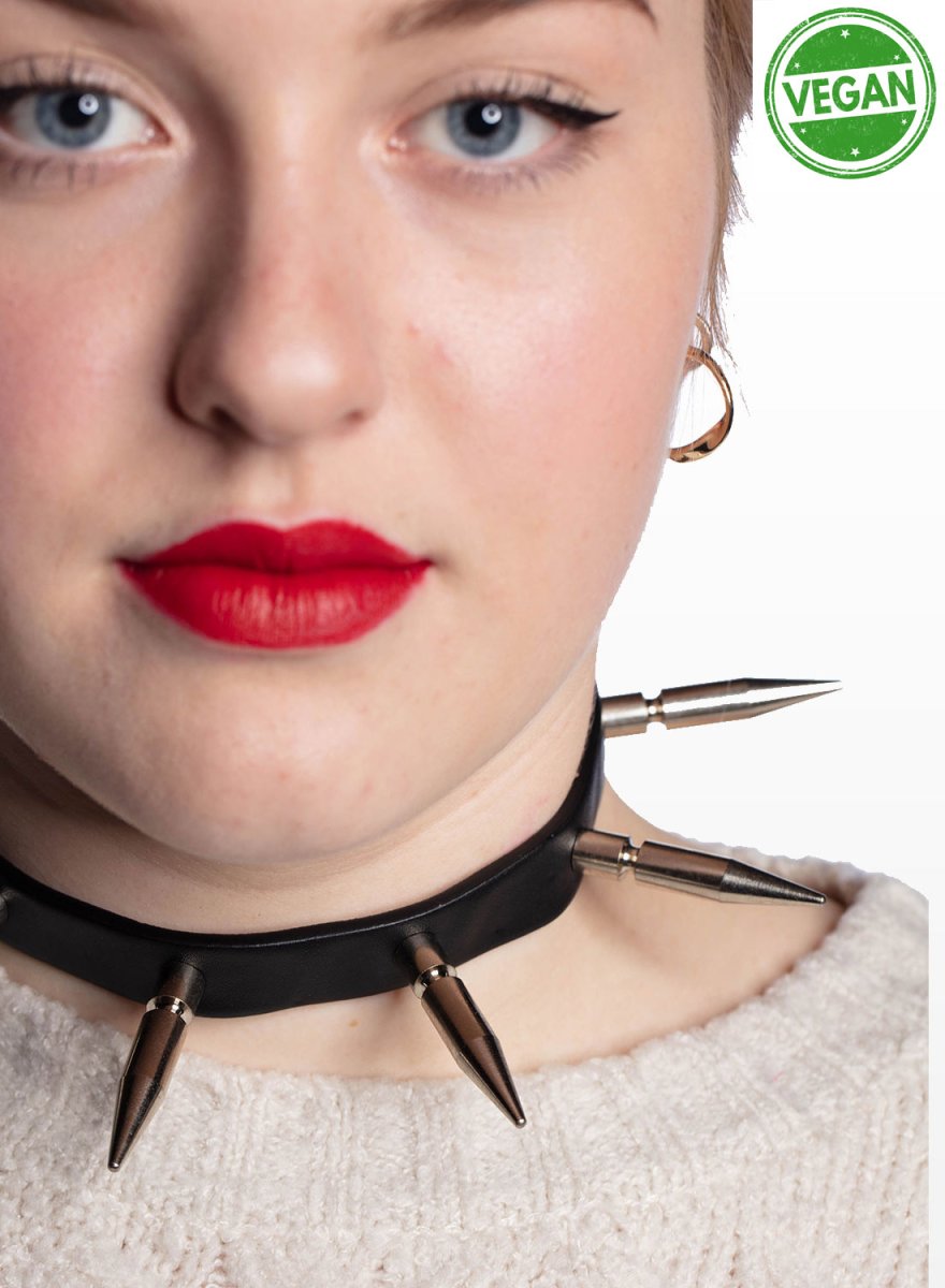 1 Row Extra Long Spike Vegan Choker är ett rockigt choker-halsband i veganläder!