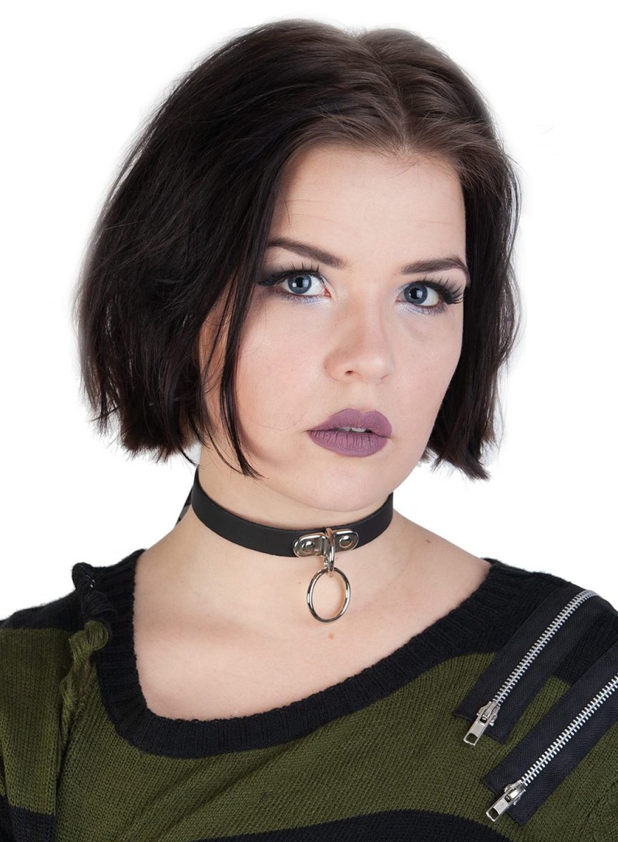 1 Row Handle Plate and Small Ring Vegan Choker – Edgy & Justerbar Statement Choker