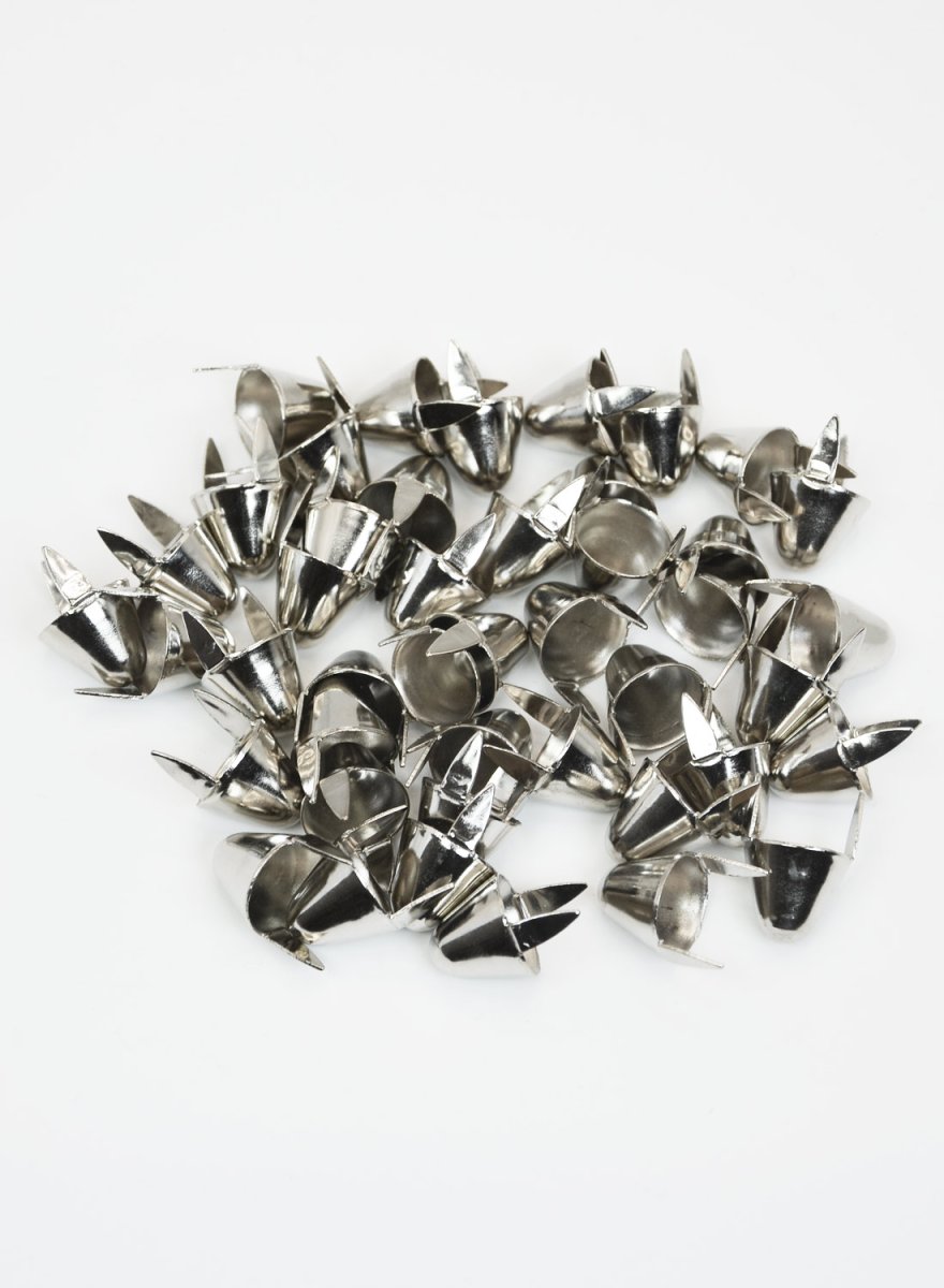 100 Large Con studs är ett storpack av stora kon-nitar, 14 mm diameter och 13 mm höga . Nitarna fäster du enkelt på skinnjackor, jeansjackor, byxor och väskor. Perfekt att använda när du vill ha nitar över en större yta av plagget.