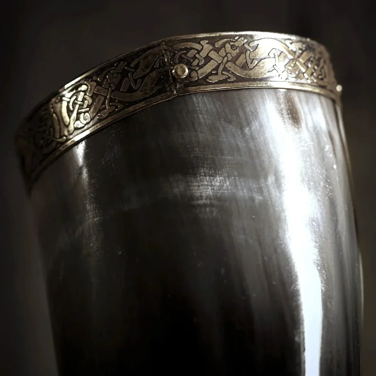 Ett vackert dryckeshorn, utsmyckat med mässingsdetaljer. Passar lika bra på festen som i bokhyllan. Tänk på att horn är ett naturligt material och att alla horn är unika vad gäller form och färg. Alla våra dryckeshorn är lackade invändigt.
