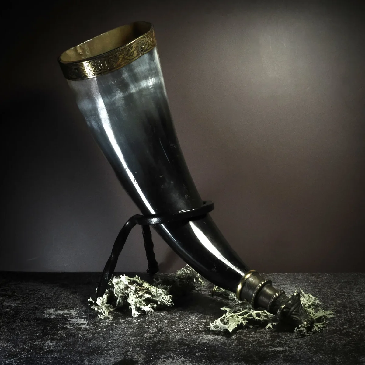 Bärsärkarna var krigare starka som björnar. Styrkan och vildheten gjorde dom fruktade. Denna hornände formad som ett björnhuvud symboliserar styrka och uthållighet. Ett vackert dryckeshorn, utsmyckat med mässingsdetaljer. Passar lika bra på festen som i bokhyllan. Tänk på att horn är ett naturligt material och att alla horn är unika vad gäller form och färg. […]