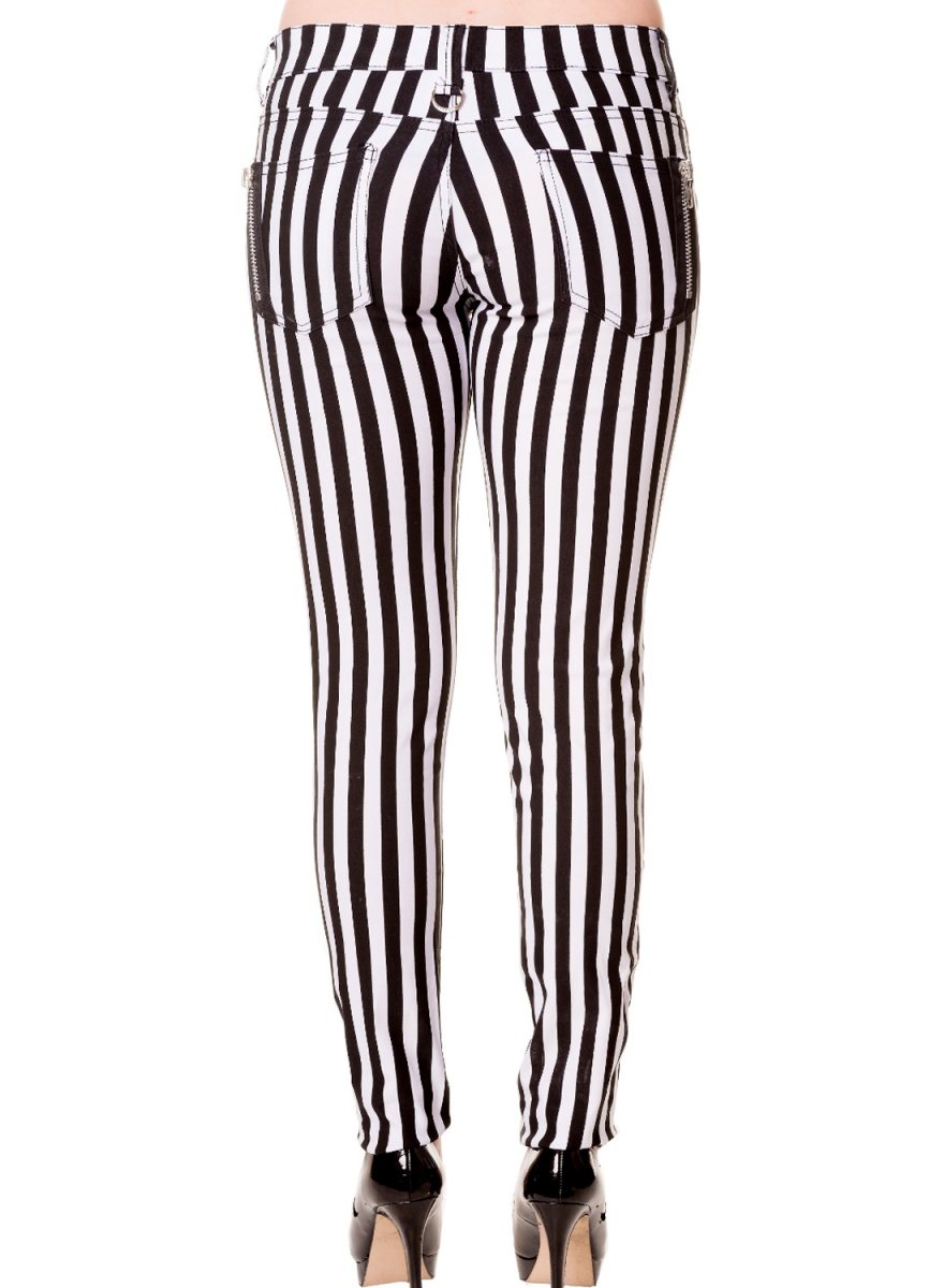 Black White Sriped Trousers är rockiga stretchiga randiga byxor från Banned Apparel.
