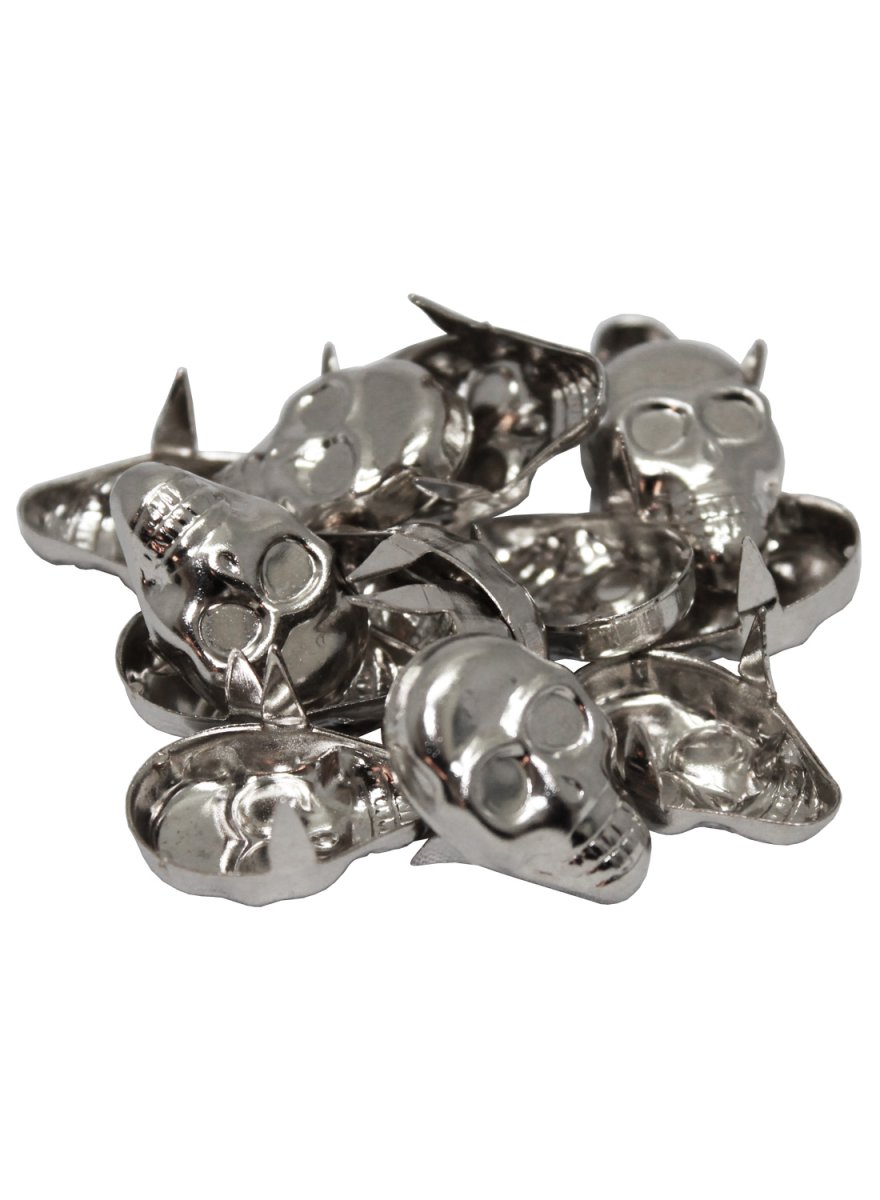 Silver Skull Studs är en true headbenger dödskalla nit i storlek 2.2 x 1.5 cm. Nitarna fäster du enkelt på skinnjackor, jeansjackor, byxor och väskor. Perfekt att använda när du vill ha nitar över en större yta av plagget.