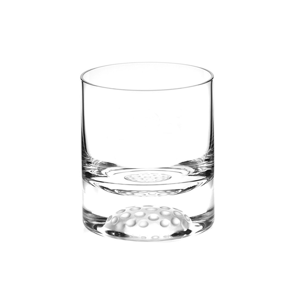 Whiskyglas Golf med golfboll i relief i botten. Volym: 25 cl Bredd: 8,5 cm Höjd: 9 cm Glasgravyr ingår i priset